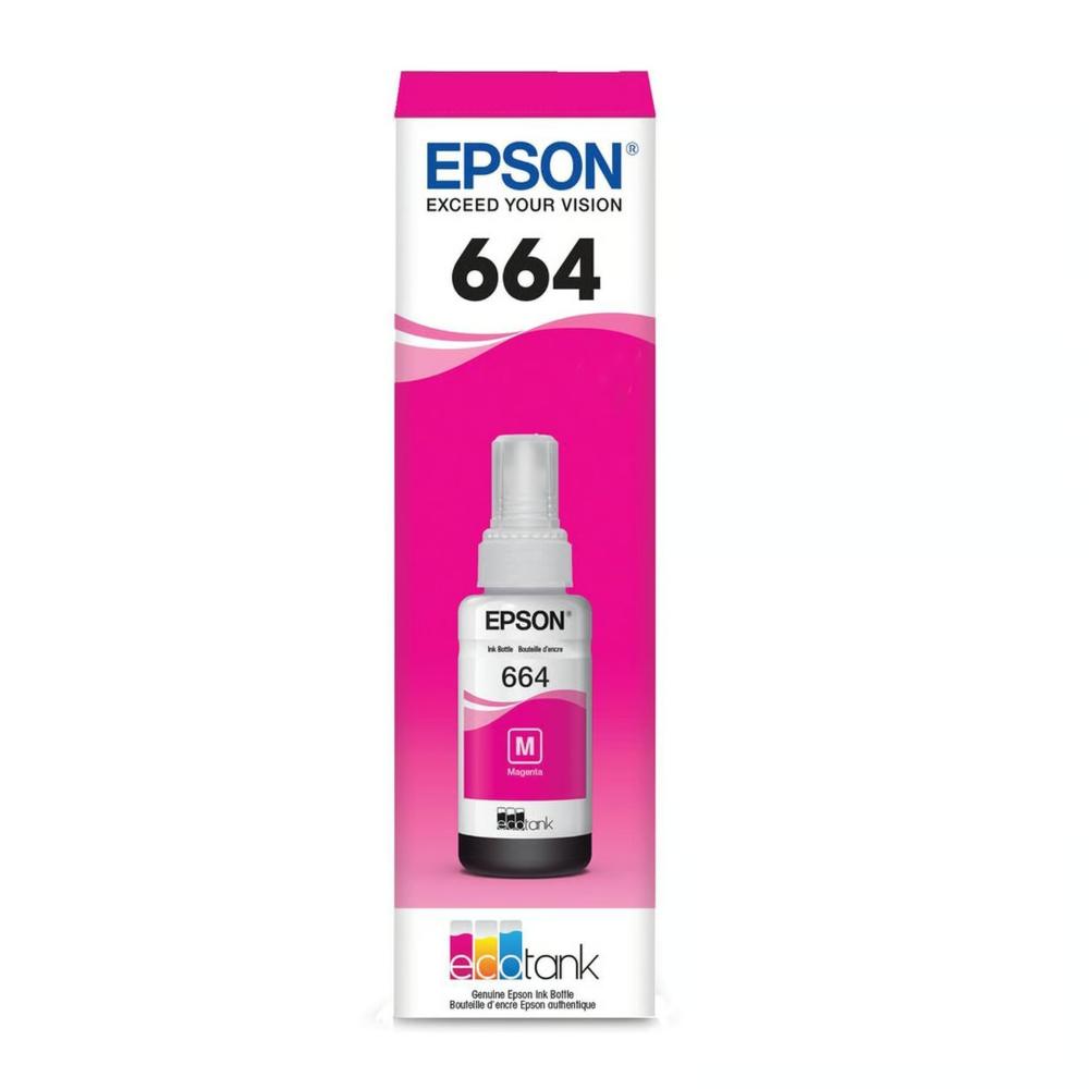 Botella Epson T664320 – Magenta IMPRESORA ECOTANK EPSON L110, L1, L200, L210, L210, L300, L310, L350, L350, L355, L365, L475, L475, L555, L575, L565, L575 (7.500 páginas). Las tintas, los papeles especiales, y las impresoras Epson están diseñadas para trabajar juntas para lograr los mejores resultados.Utiliza siempre las botellas de reemplazo originales y económicas de Epson para proteger tu impresora. Impresiones brillantes y duraderas.
