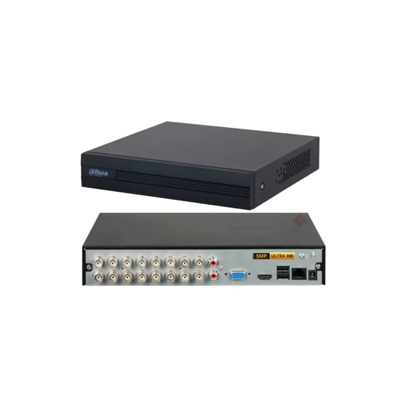 Este DVR (Grabador de Video Digital) es un dispositivo avanzado para sistemas de seguridad, compatible con 16 canales HDCVI y 8 canales IP, ofreciendo un total de 24 canales para monitoreo flexible.