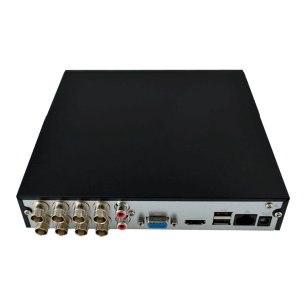 8 Canales, Inteligencia Artificial, Penta-brid (CVBS/HDCVI/AHD/TVI/IP), H264+/H265+, Audio in/out. Hasta 6TB (Disco Duro No incluido)